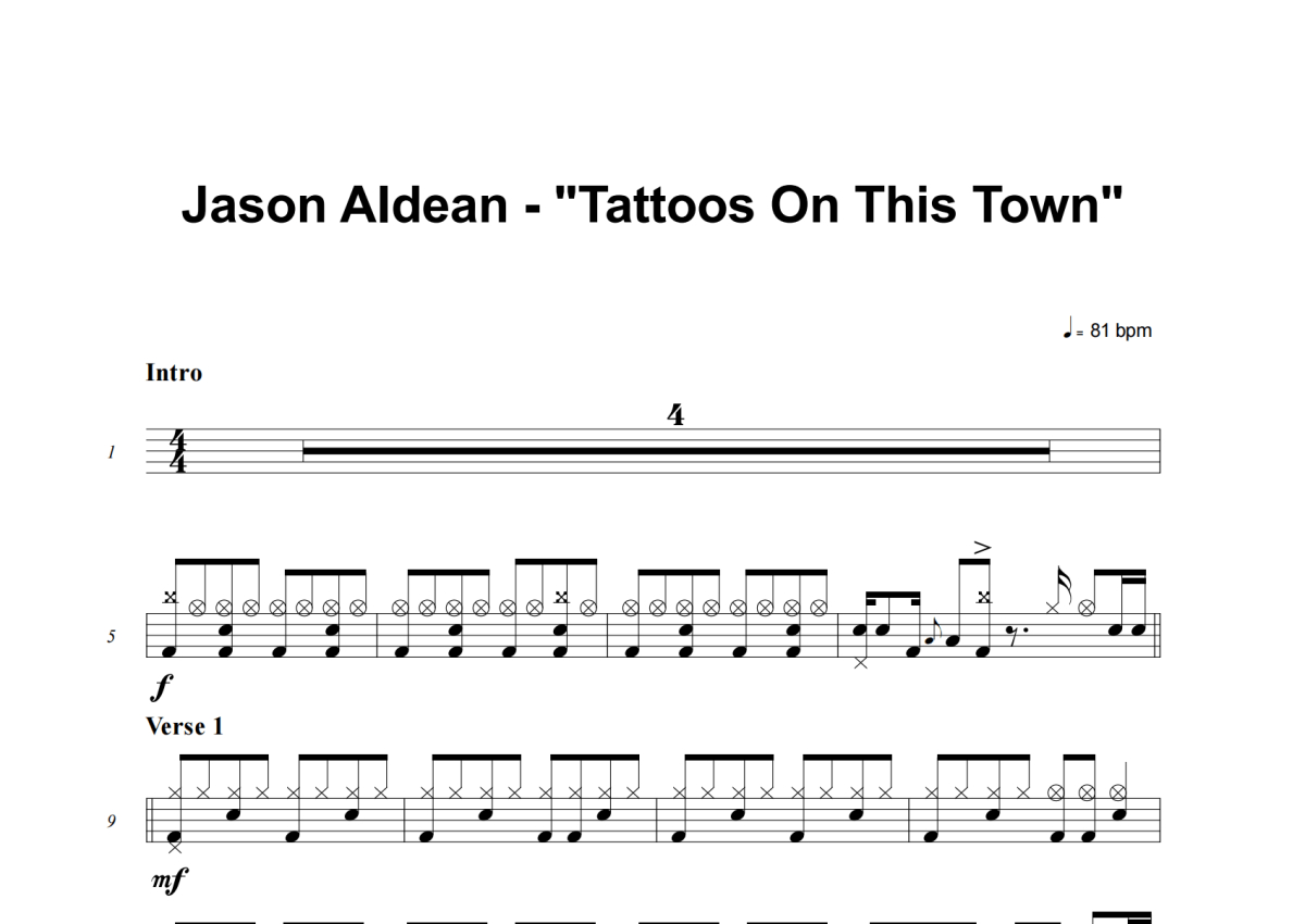 Jason Aldean《Tattoos On This Town》架子鼓谱