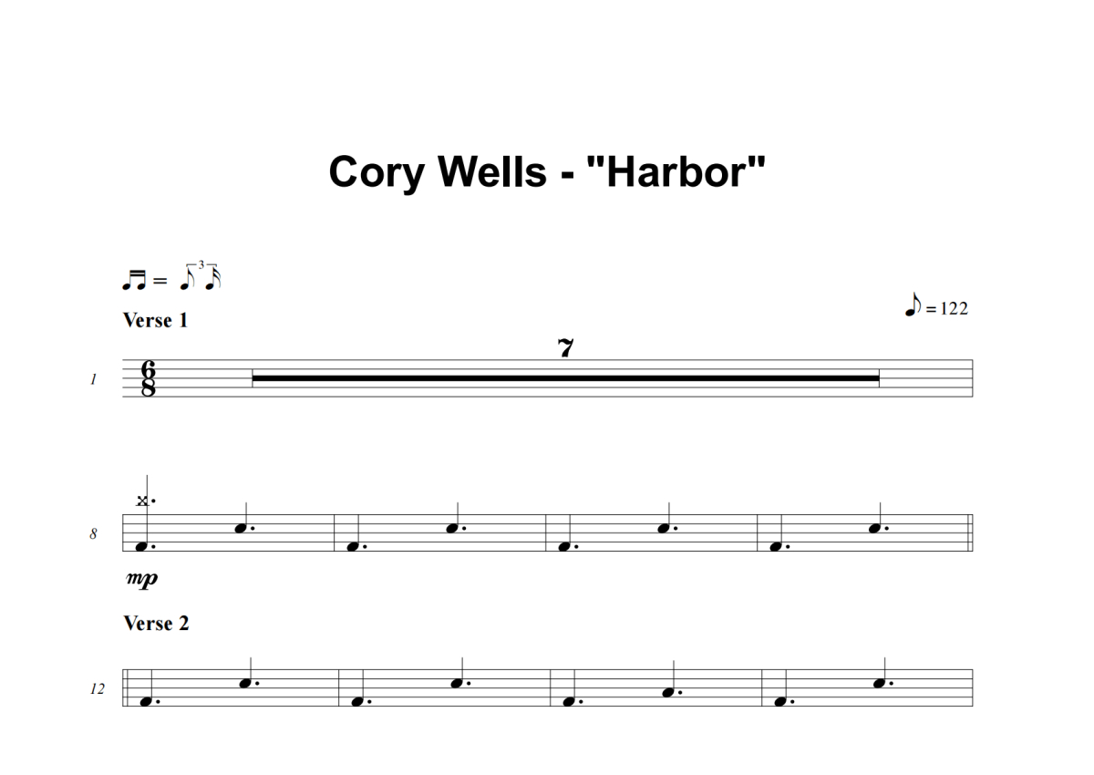 Cory Wells《Harbor》架子鼓谱