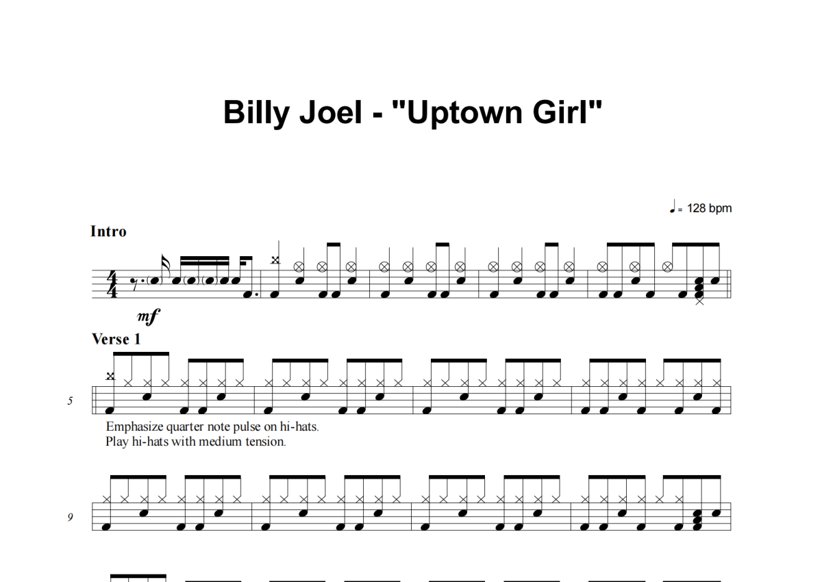 Billy Joel《Uptown Girl》架子鼓谱