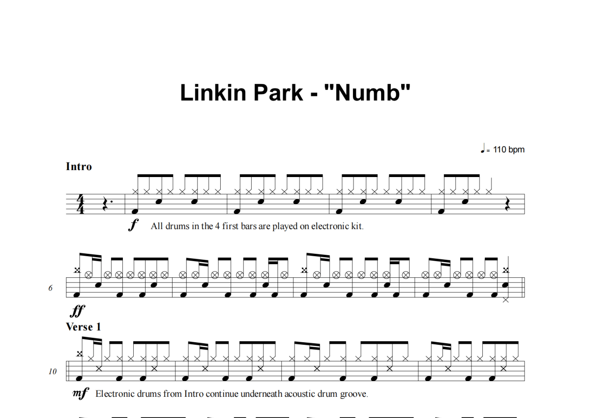 Linkin Park《Numb (Easy Version)》架子鼓谱
