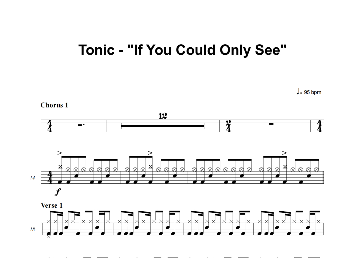 《If You Could Only See》是Tonic演唱的一首歌曲,这份架子鼓谱共有三张高清图谱,图谱由 @积极处世 编配上传,图谱使用五线谱编配,使用这份If You Could Only See架子鼓谱,你将能够轻松地敲打出这首Tonic的If You Could Only See,快来尝试吧。