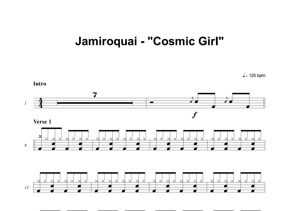 Jamiroquai《Cosmic Girl (Easy Version)》架子鼓谱