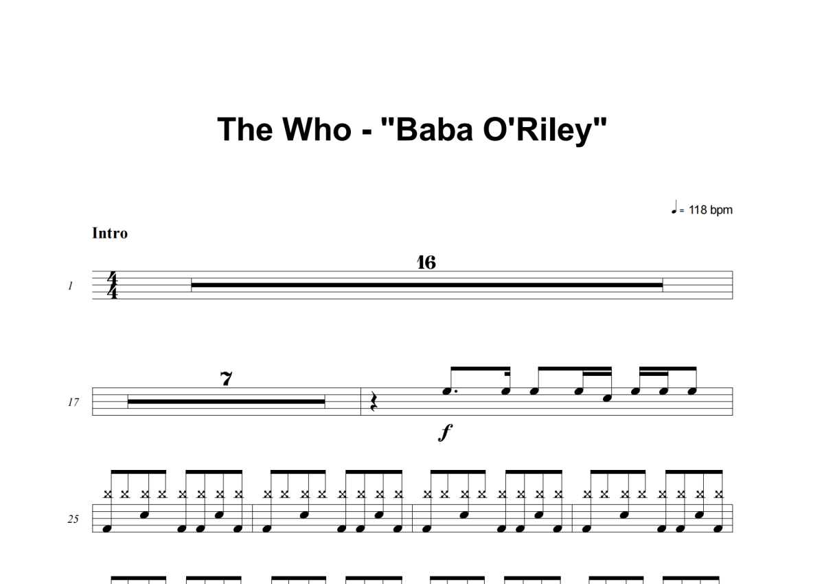The Who《Baba O'Riley (Easy Version)》架子鼓谱