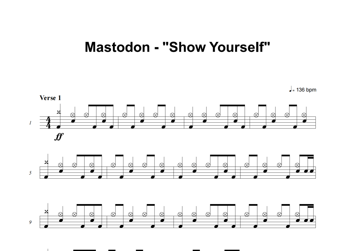 Mastodon《Show Yourself (Easy Version)》架子鼓谱