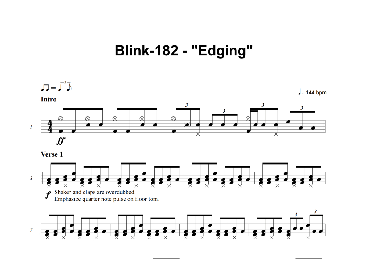 Blink-182《Edging》架子鼓谱