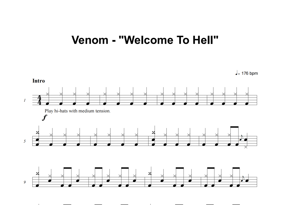Venom《Welcome To Hell》架子鼓谱