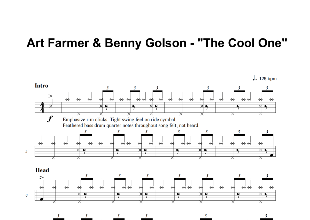 Art Farmer, Benny Golson《The Cool One》架子鼓谱