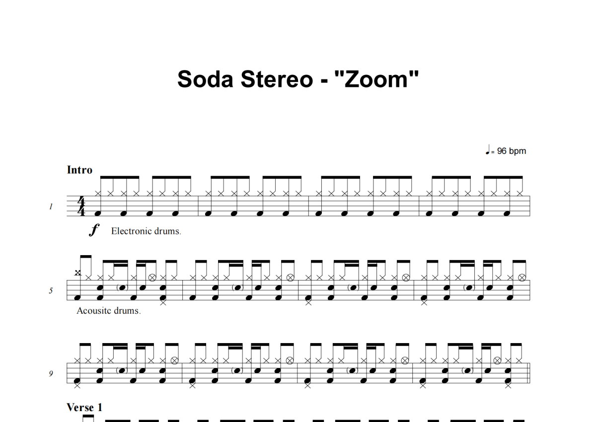 Soda Stereo《Zoom》架子鼓谱