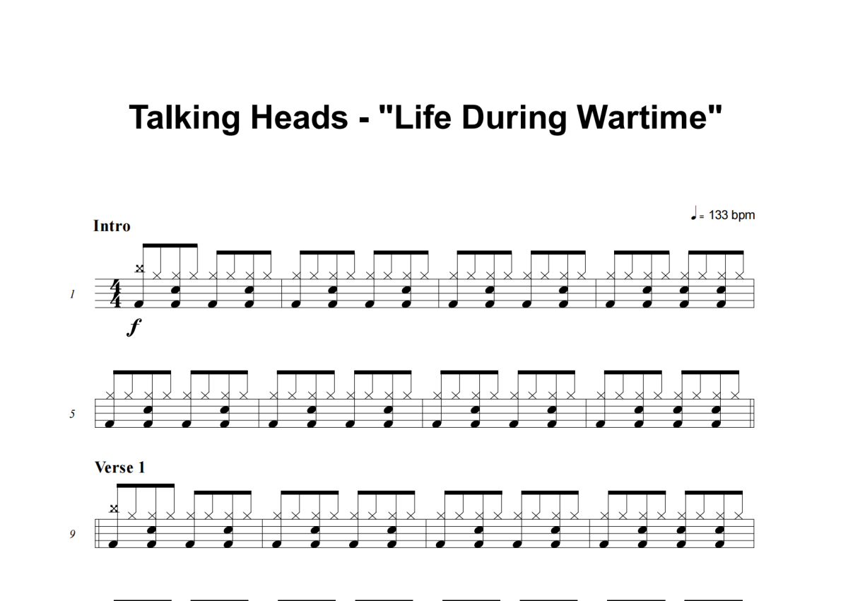 Talking Heads《Life During Wartime》架子鼓谱