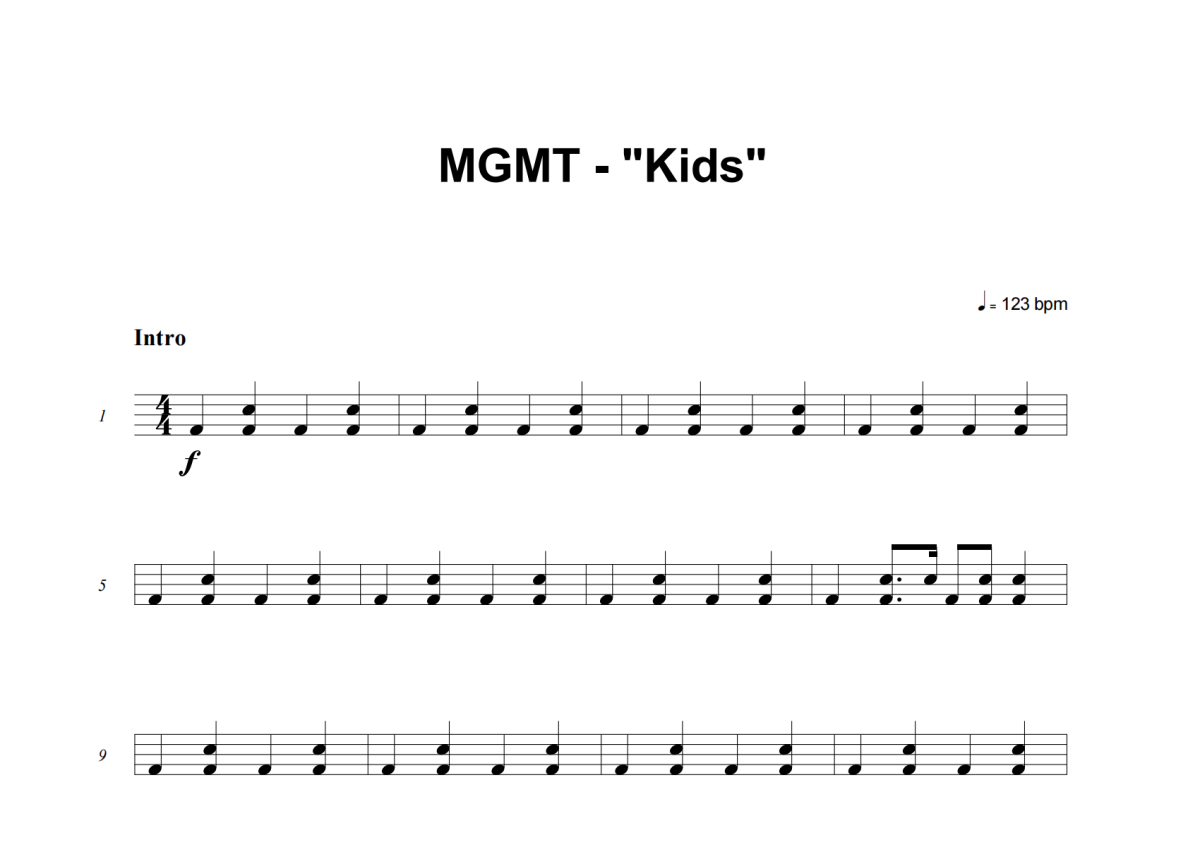 MGMT《Kids》架子鼓谱