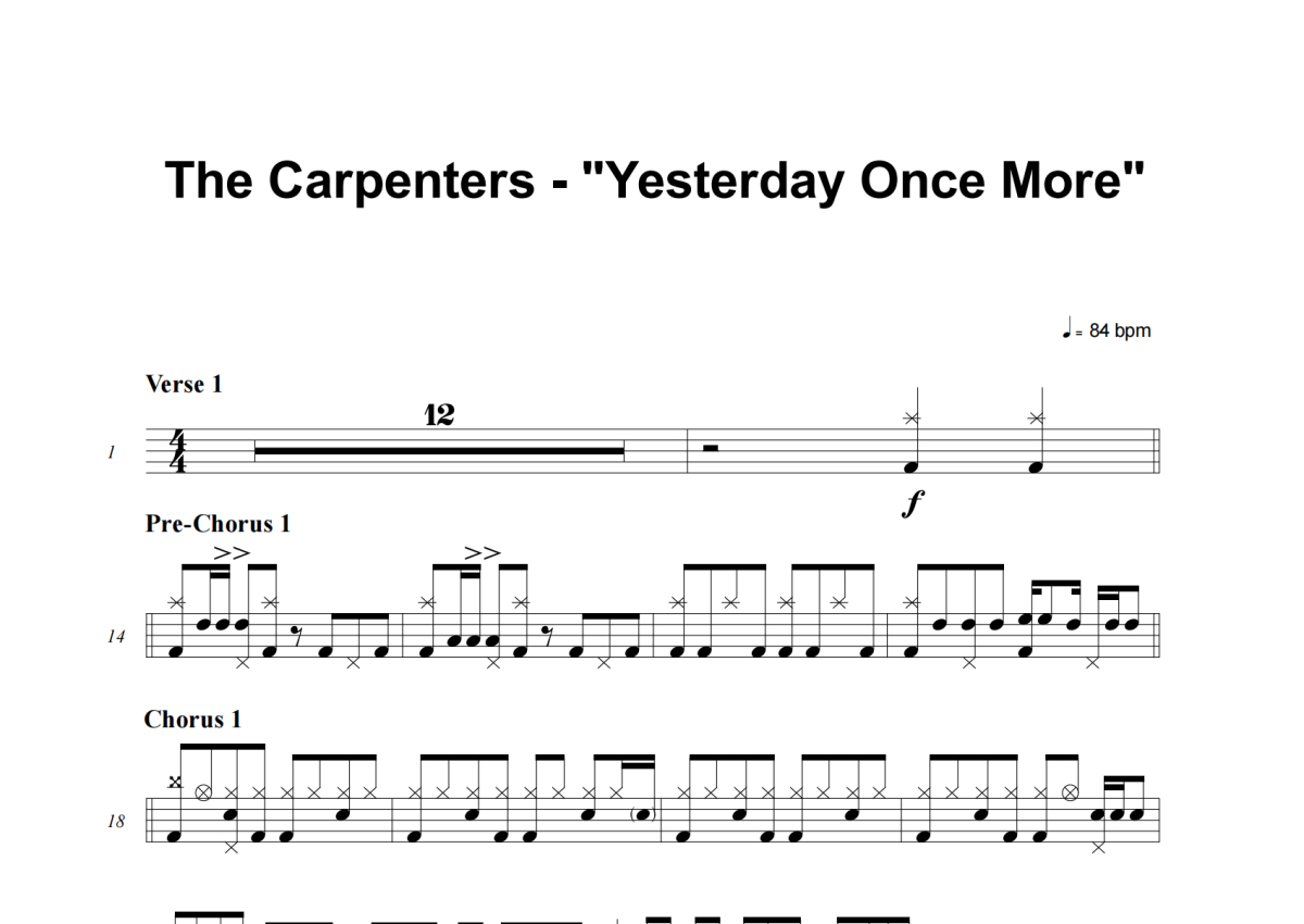 The Carpenters《Yesterday Once More》架子鼓谱