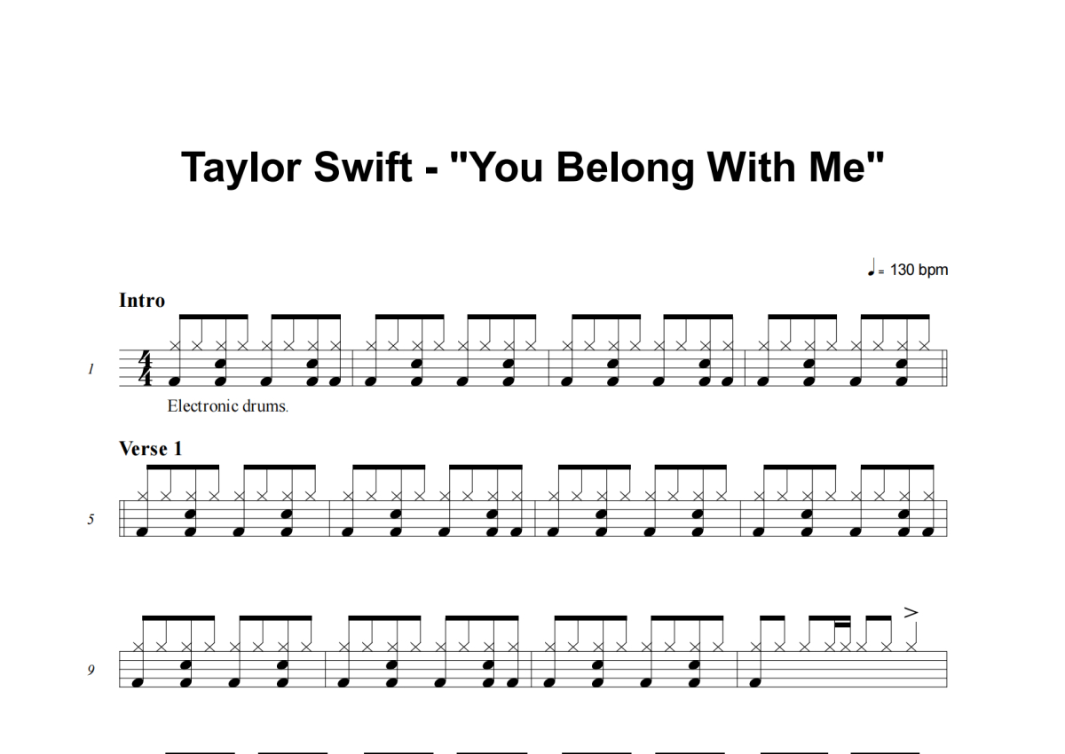 Taylor Swift《You Belong With Me》架子鼓谱