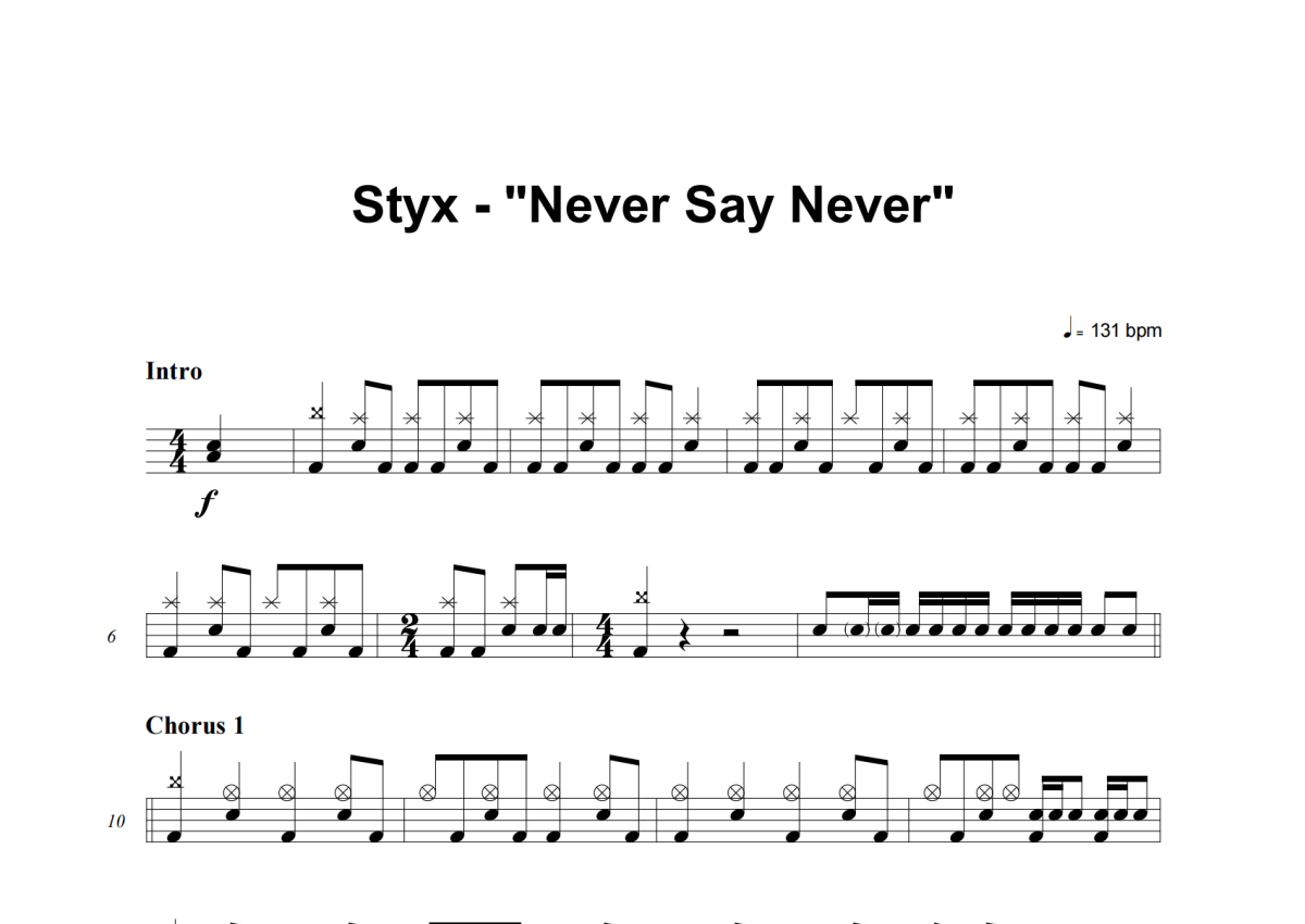 Styx《Never Say Never》架子鼓谱