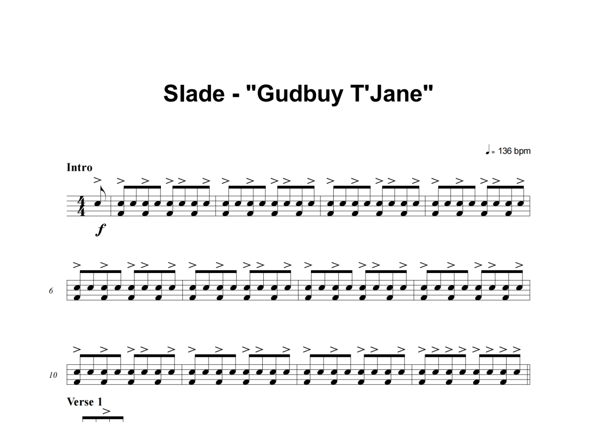 《Gudbuy T'Jane》是Slade演唱的一首歌曲,这份架子鼓谱共有四张高清图谱,图谱由 @积极处世 编配上传,图谱使用五线谱编配,使用这份Gudbuy T'Jane架子鼓谱,你将能够轻松地敲打出这首Slade的Gudbuy T'Jane,快来尝试吧。