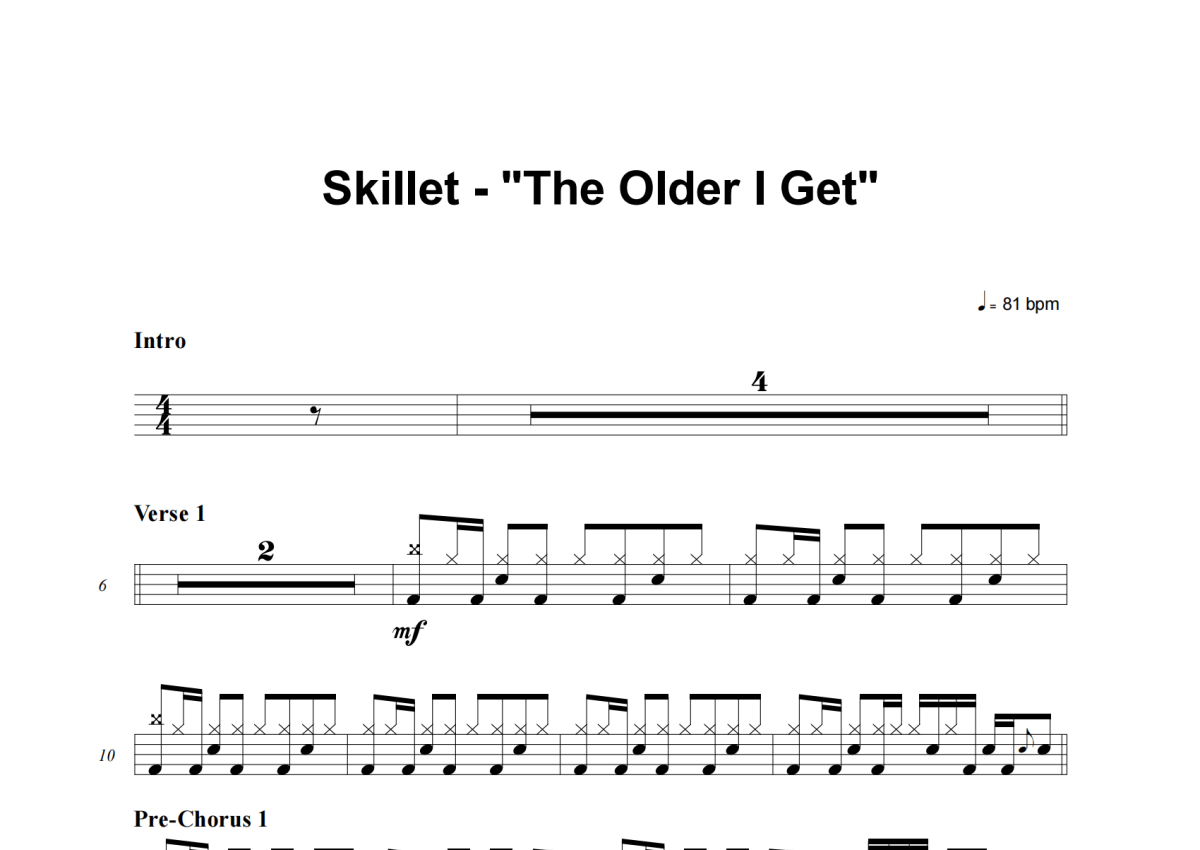 Skillet《The Older I Get》架子鼓谱