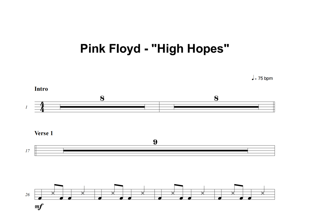 Pink Floyd《High Hopes》架子鼓谱