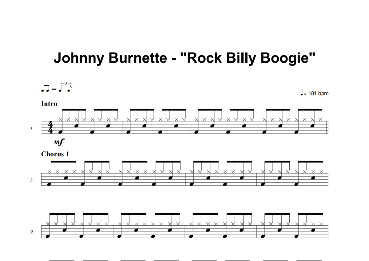 Johnny Burnette《Rock Billy Boogie》架子鼓谱