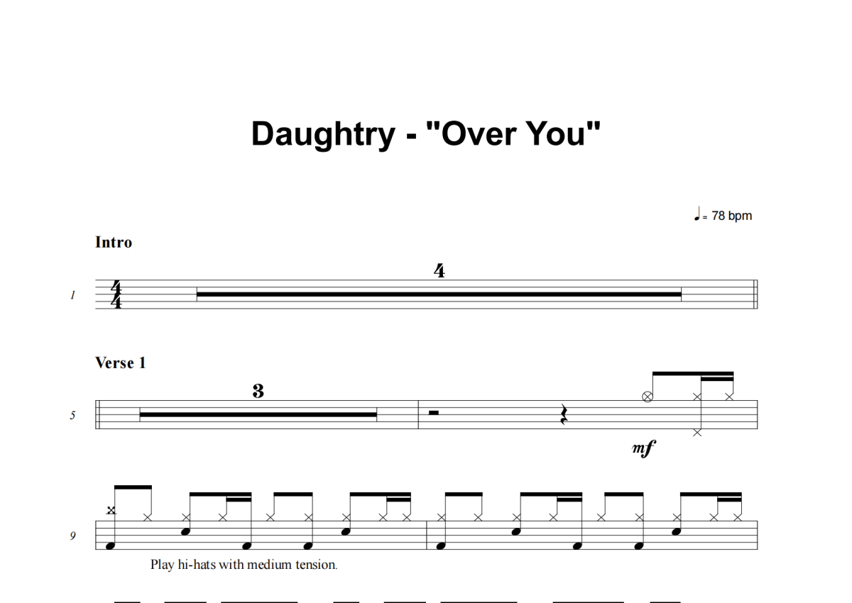 Daughtry《Over You》架子鼓谱