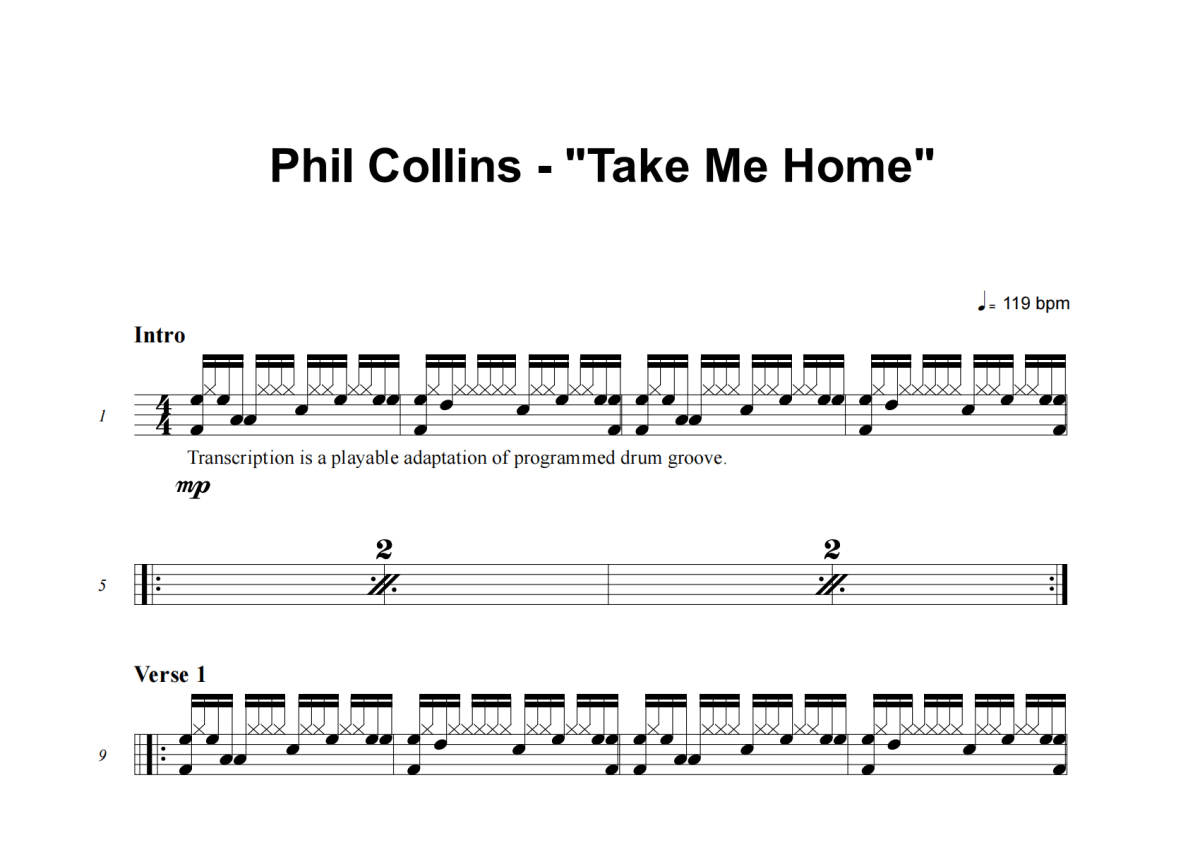 Phil Collins《Take Me Home》架子鼓谱