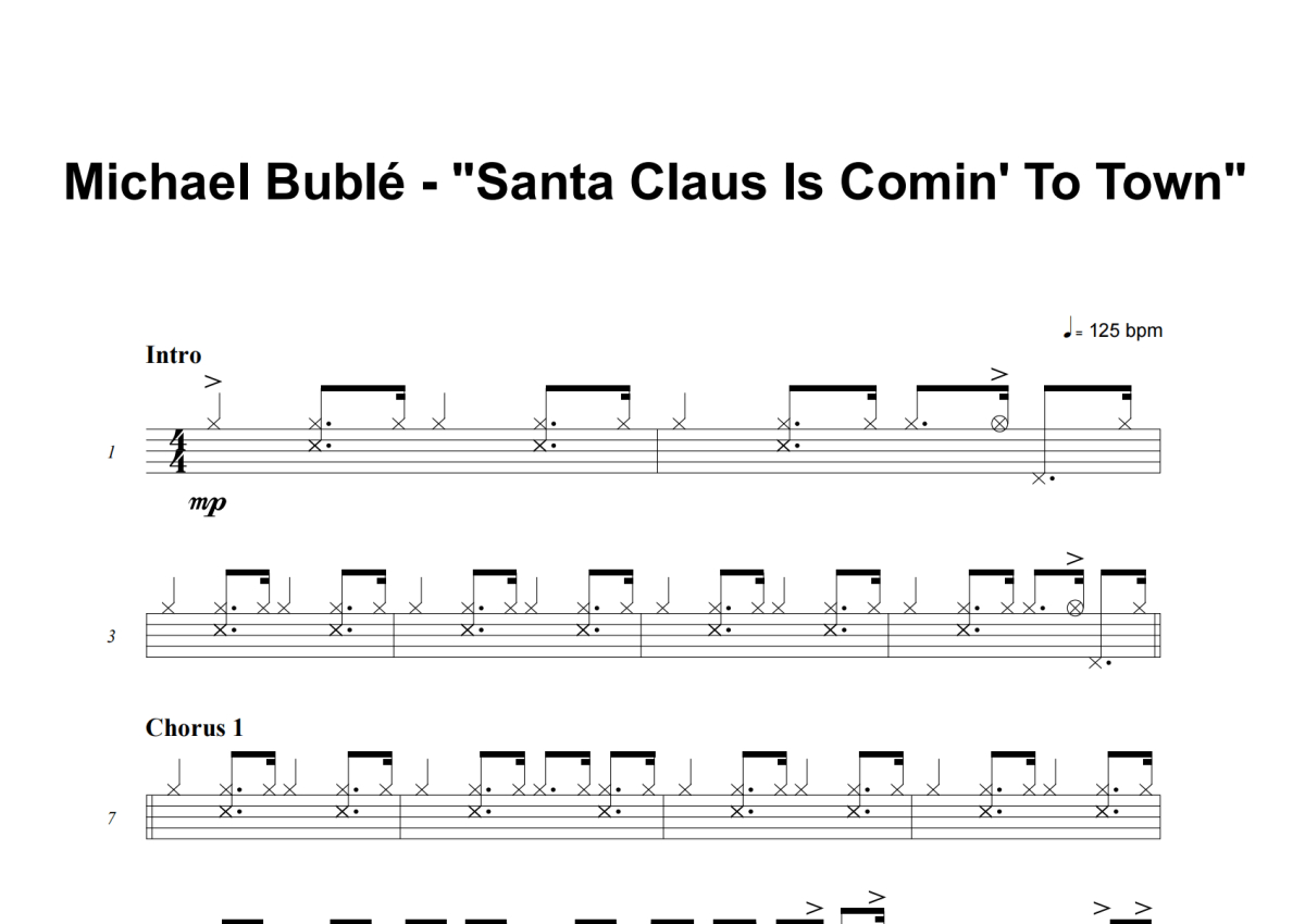 Michael Buble《Santa Claus Is Comin' To Town》架子鼓谱