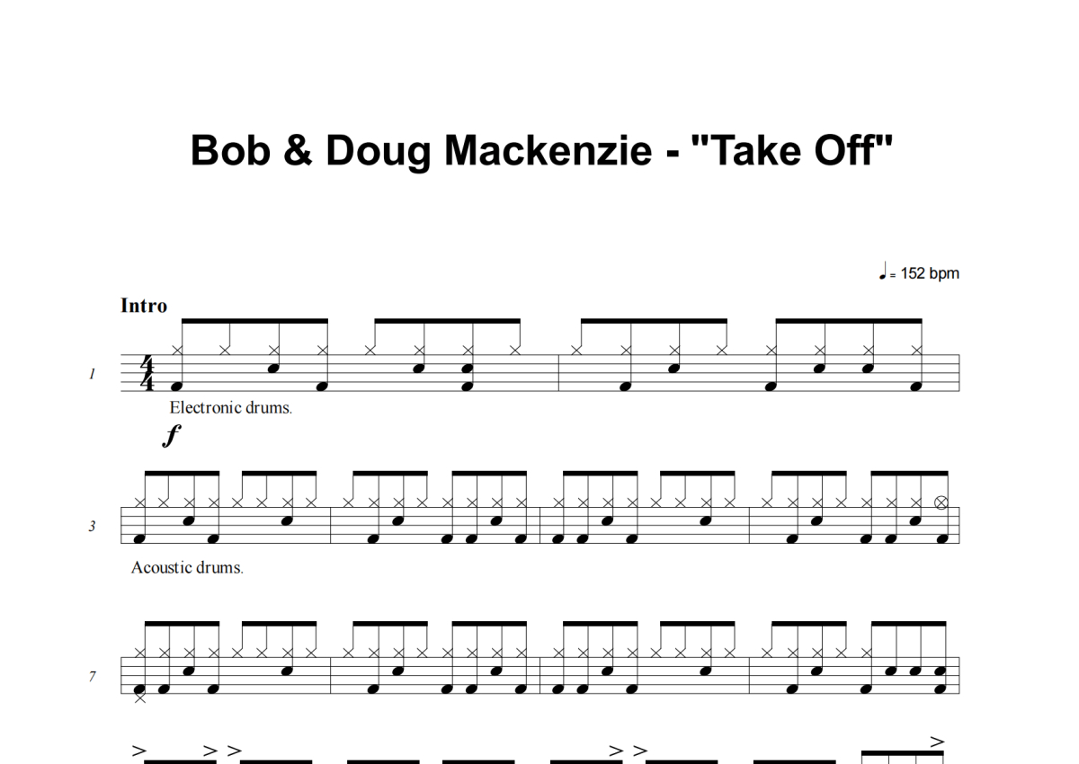 Bob & Doug McKenzie《Take Off》架子鼓谱