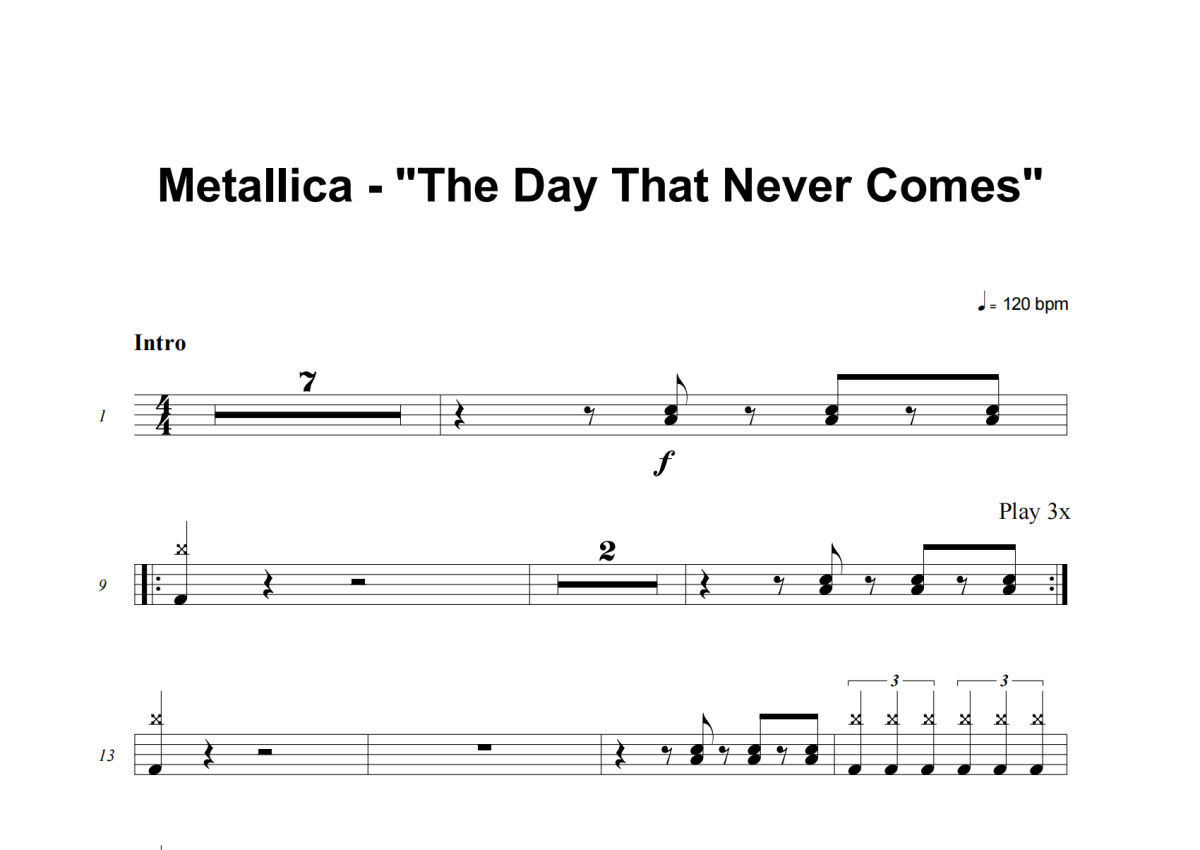 Metallica《The Day That Never Comes》架子鼓谱