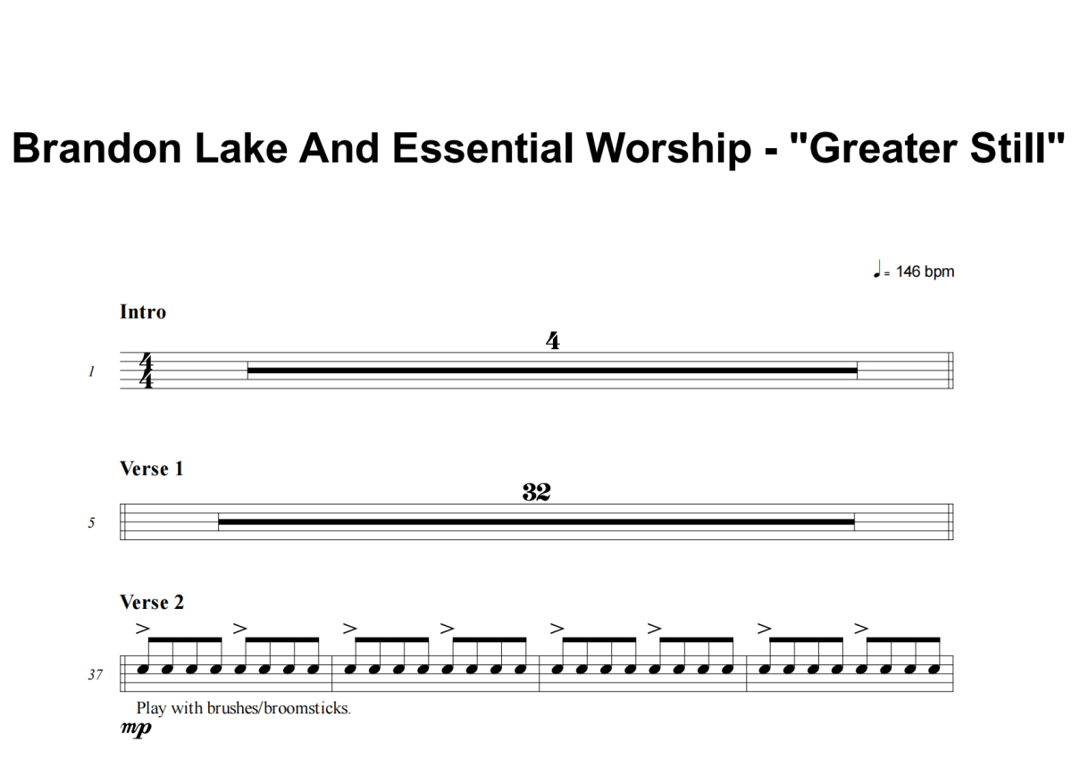 Brandon Lake And Essential Worship《Greater Still》架子鼓谱