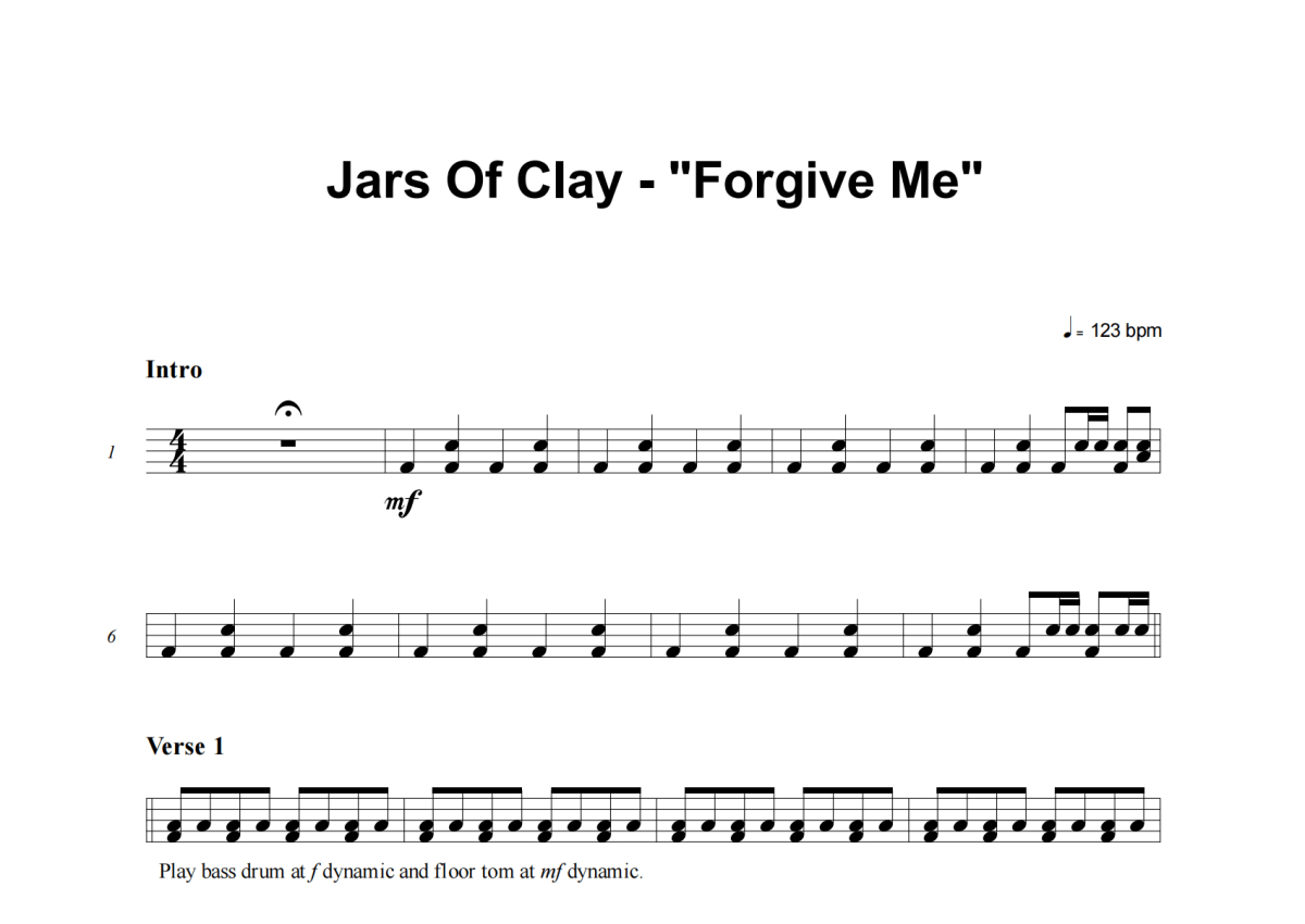 《Forgive Me》是Jars Of Clay演唱的一首歌曲,这份架子鼓谱共有四张高清图谱,图谱由 @积极处世 编配上传,图谱使用五线谱编配,使用这份Forgive Me架子鼓谱,你将能够轻松地敲打出这首Jars Of Clay的Forgive Me,快来尝试吧。