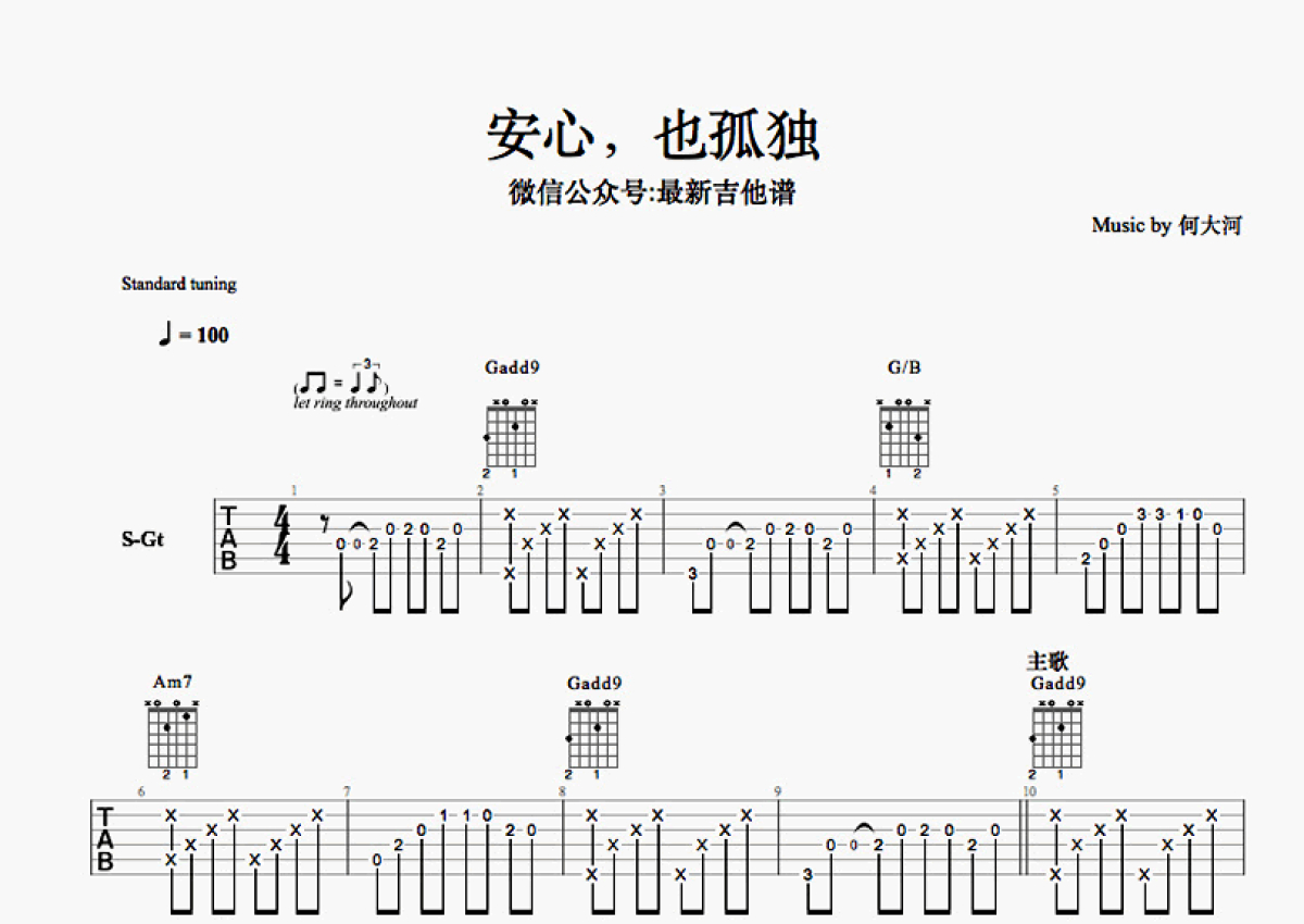 何大河《安心,也孤独》吉他谱 - 弹唱六线谱