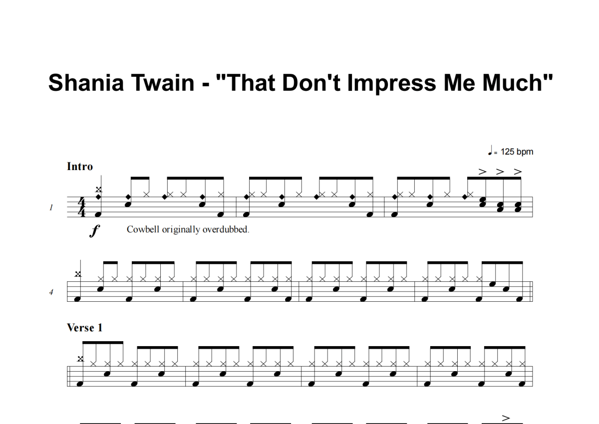 Shania Twain《That Don't Impress Me Much》架子鼓谱
