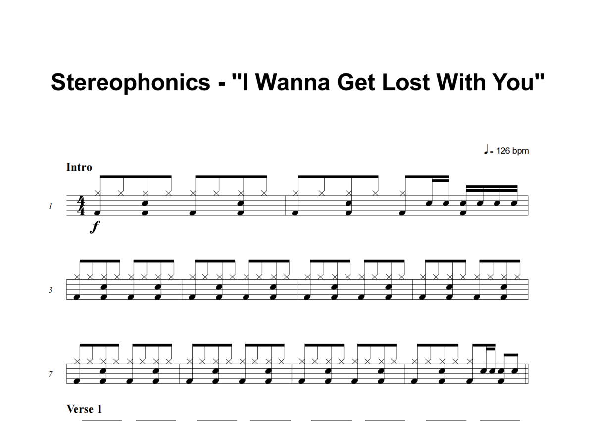 Stereophonics《I Wanna Get Lost With You》架子鼓谱