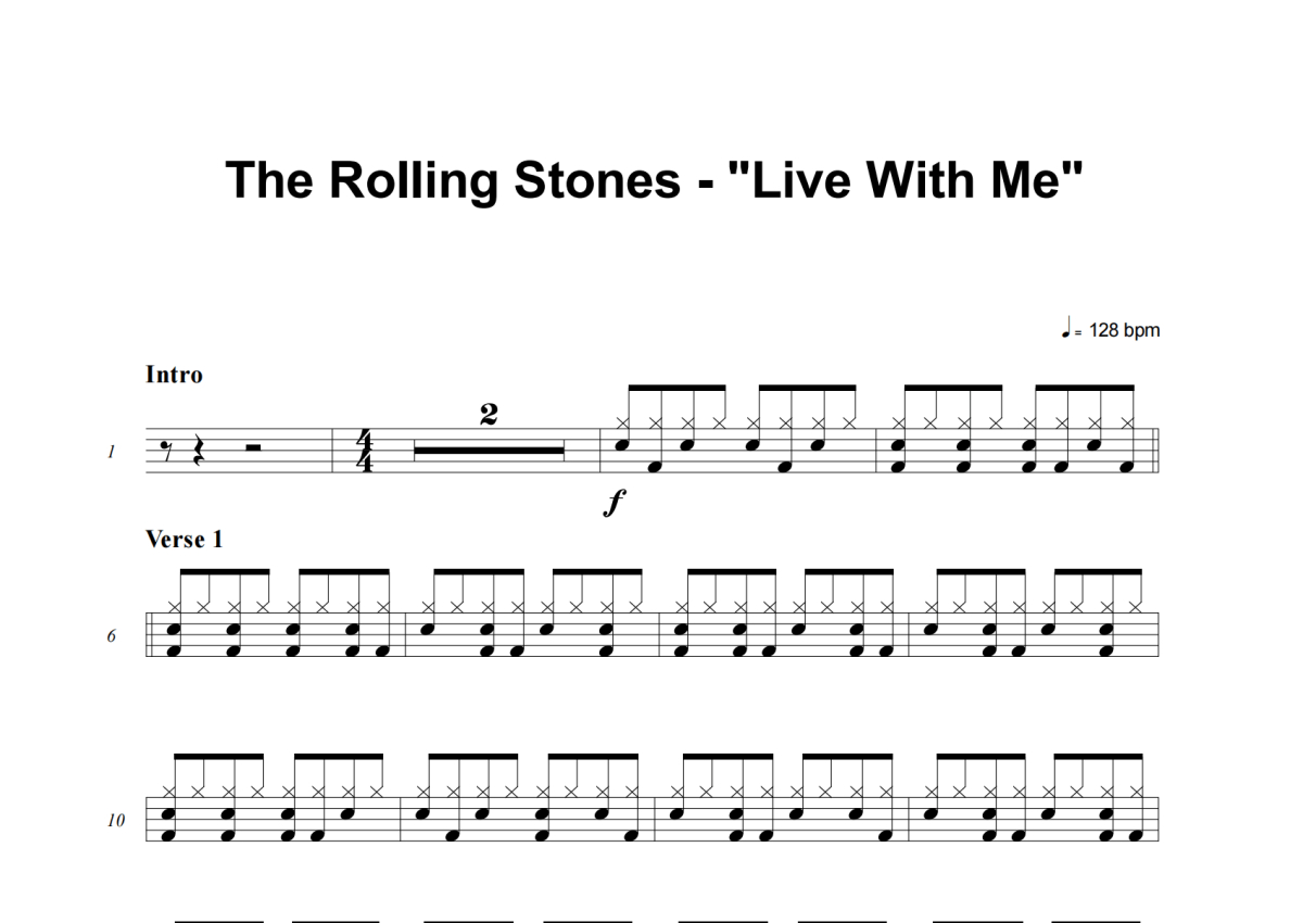 The Rolling Stones《Live With Me》架子鼓谱