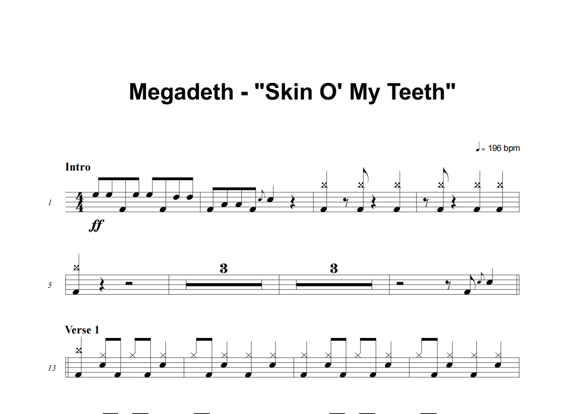 Megadeth《Skin O' My Teeth (Easy Version)》架子鼓谱