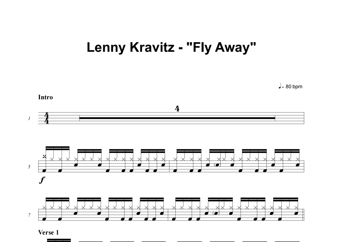 《Fly Away》是Lenny Kravitz演唱的一首歌曲,这份架子鼓谱共有五张高清图谱,图谱由 @积极处世 编配上传,图谱使用五线谱编配,使用这份Fly Away架子鼓谱,你将能够轻松地敲打出这首Lenny Kravitz的Fly Away,快来尝试吧。
