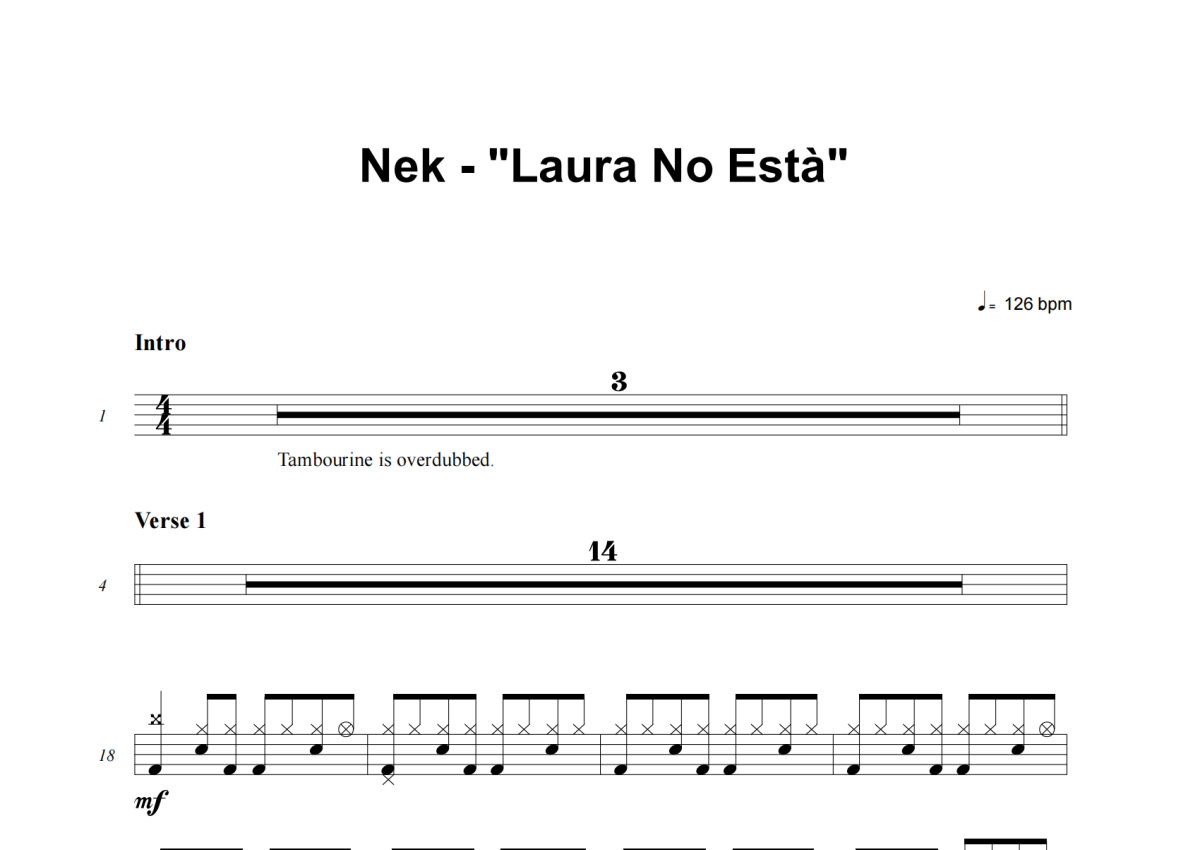 Nek《Laura No Esta》架子鼓谱