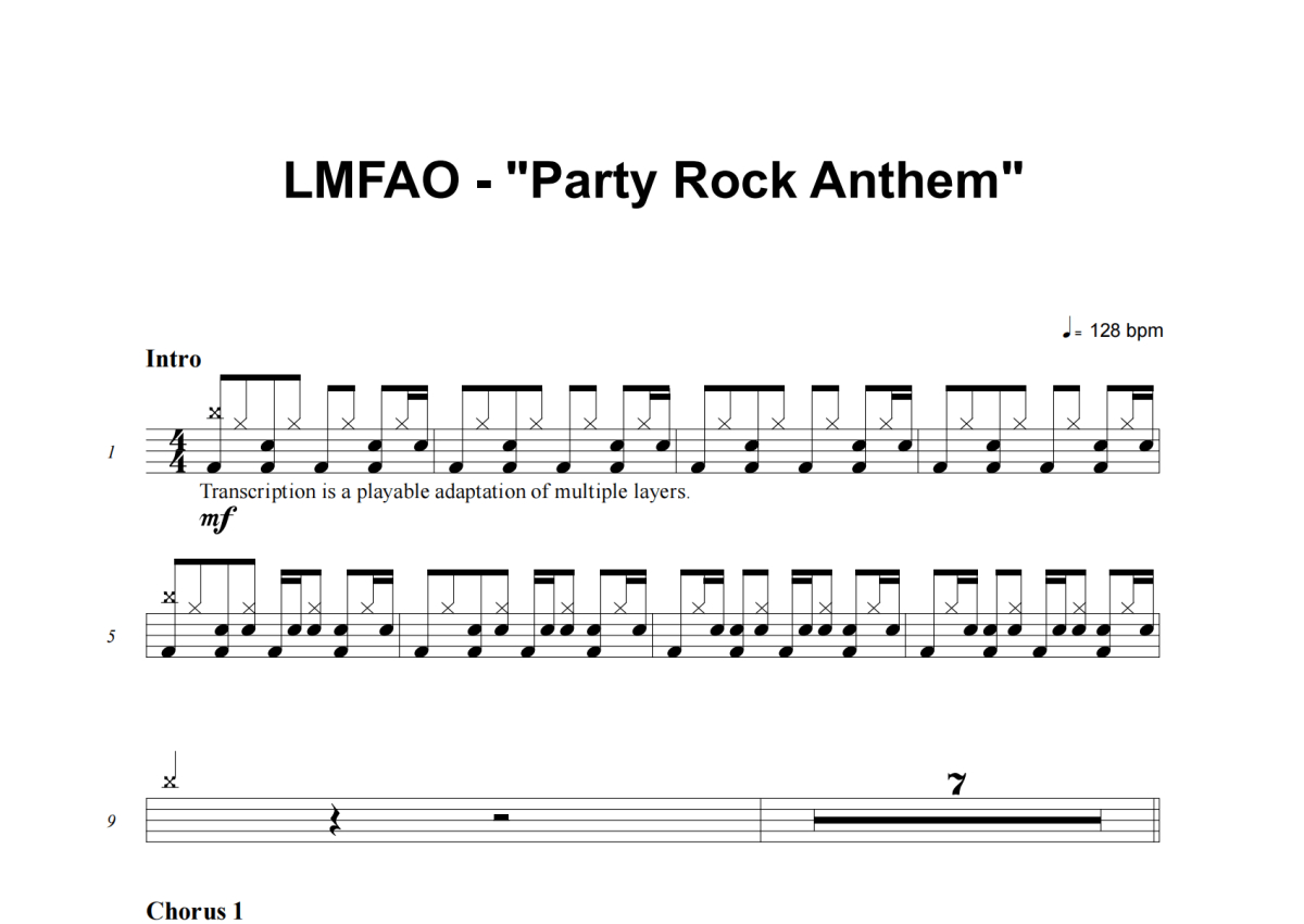 LMFAO《Party Rock Anthem》架子鼓谱