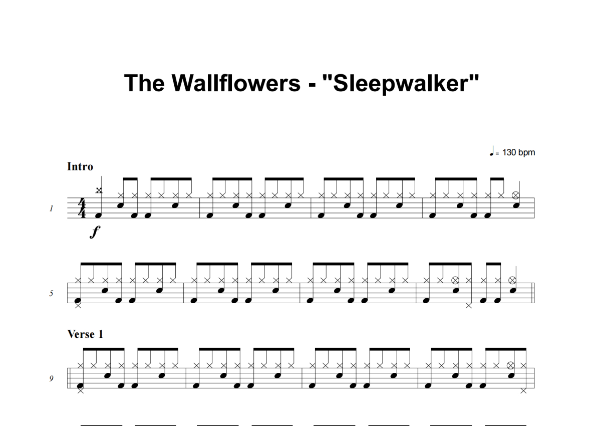 The Wallflowers《Sleepwalker》架子鼓谱