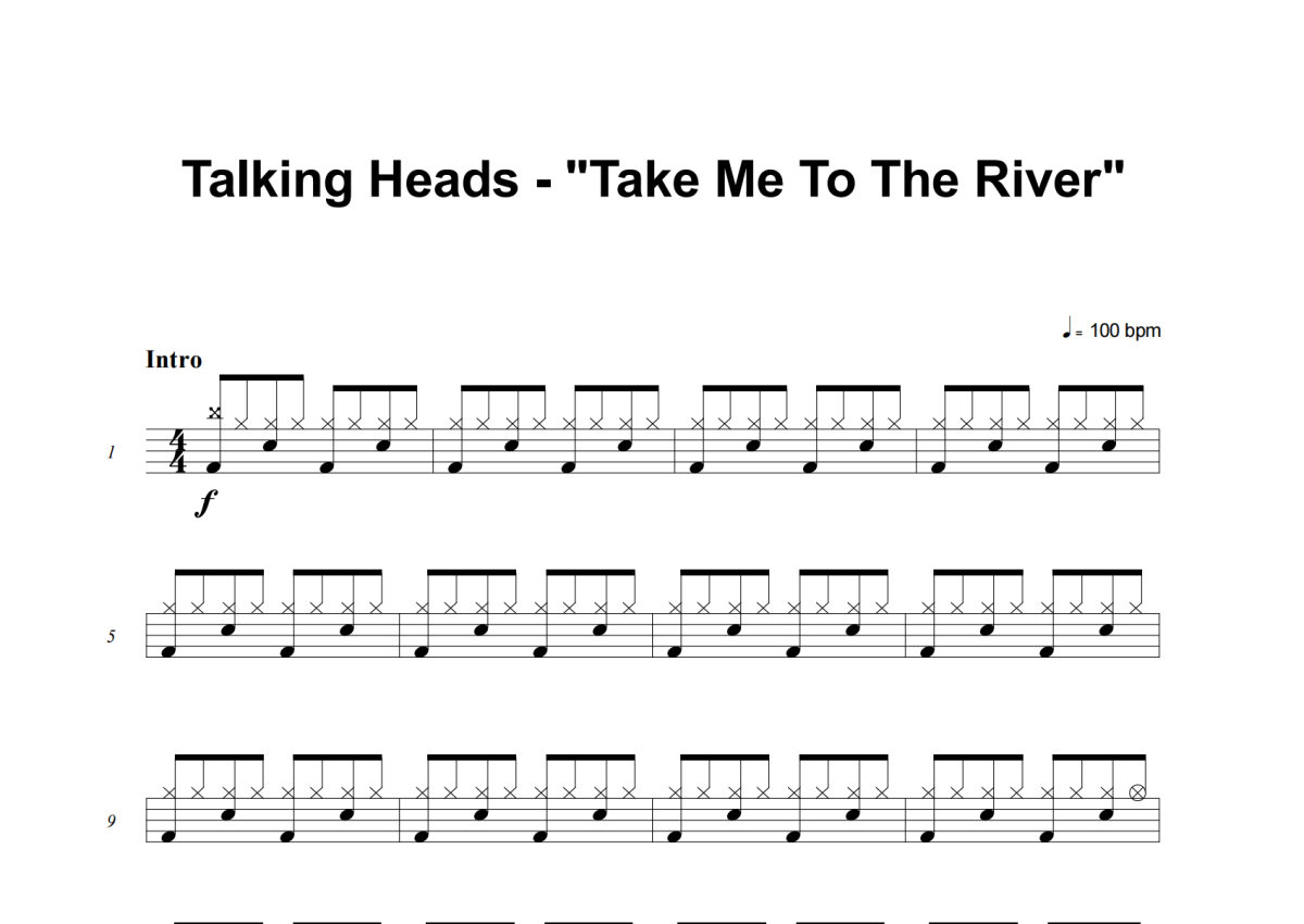 Talking Heads《Take Me To The River》架子鼓谱