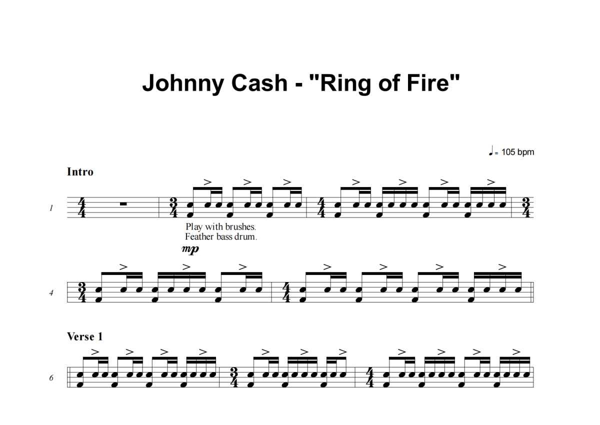 Johnny Cash《Ring Of Fire》架子鼓谱