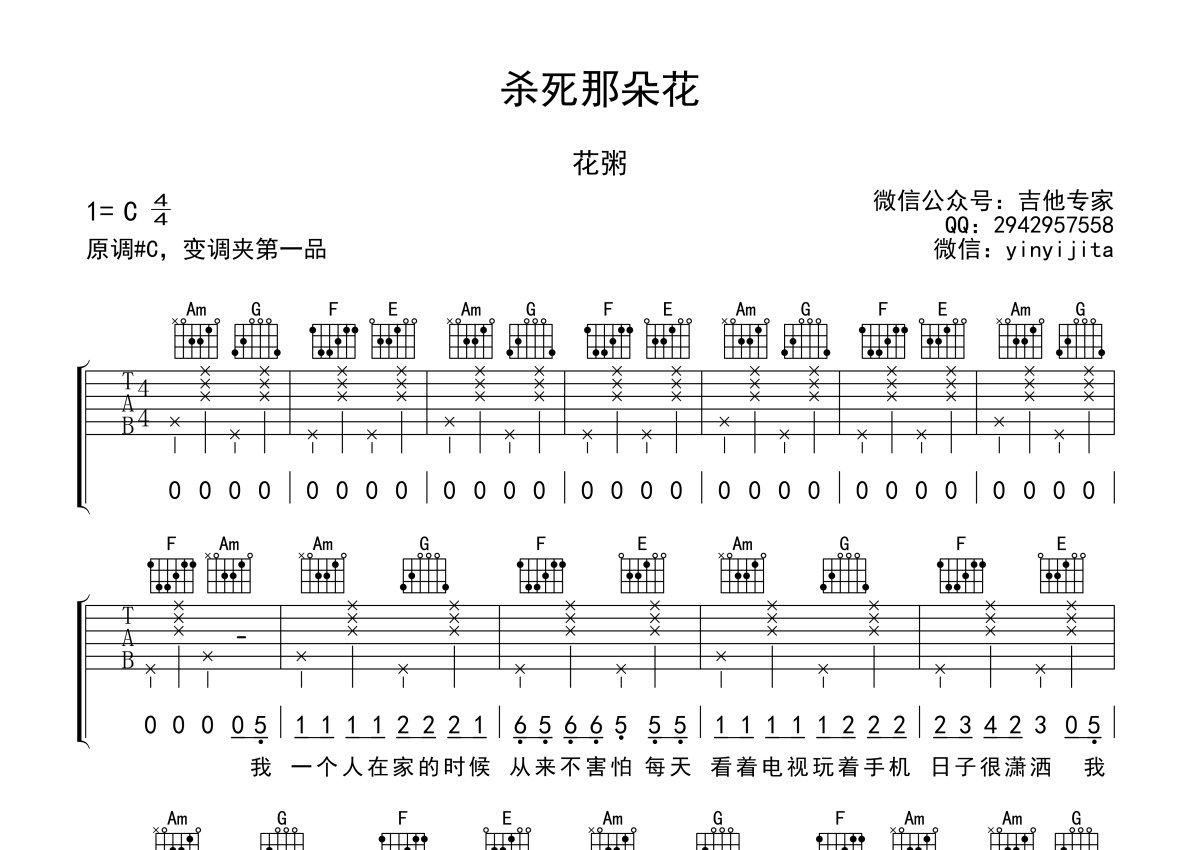 花粥《杀死那朵花》吉他谱 - C调弹唱六线谱