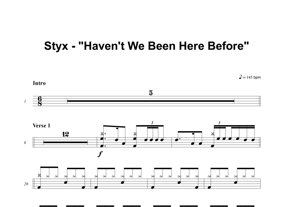 《Haven't We Been Here Before》是Styx演唱的一首歌曲,这份架子鼓谱共有三张高清图谱,图谱由 @积极处世 编配上传,图谱使用五线谱编配,使用这份Haven't We Been Here Before架子鼓谱,你将能够轻松地敲打出这首Styx的Haven't We Been Here Before,快来尝试吧。