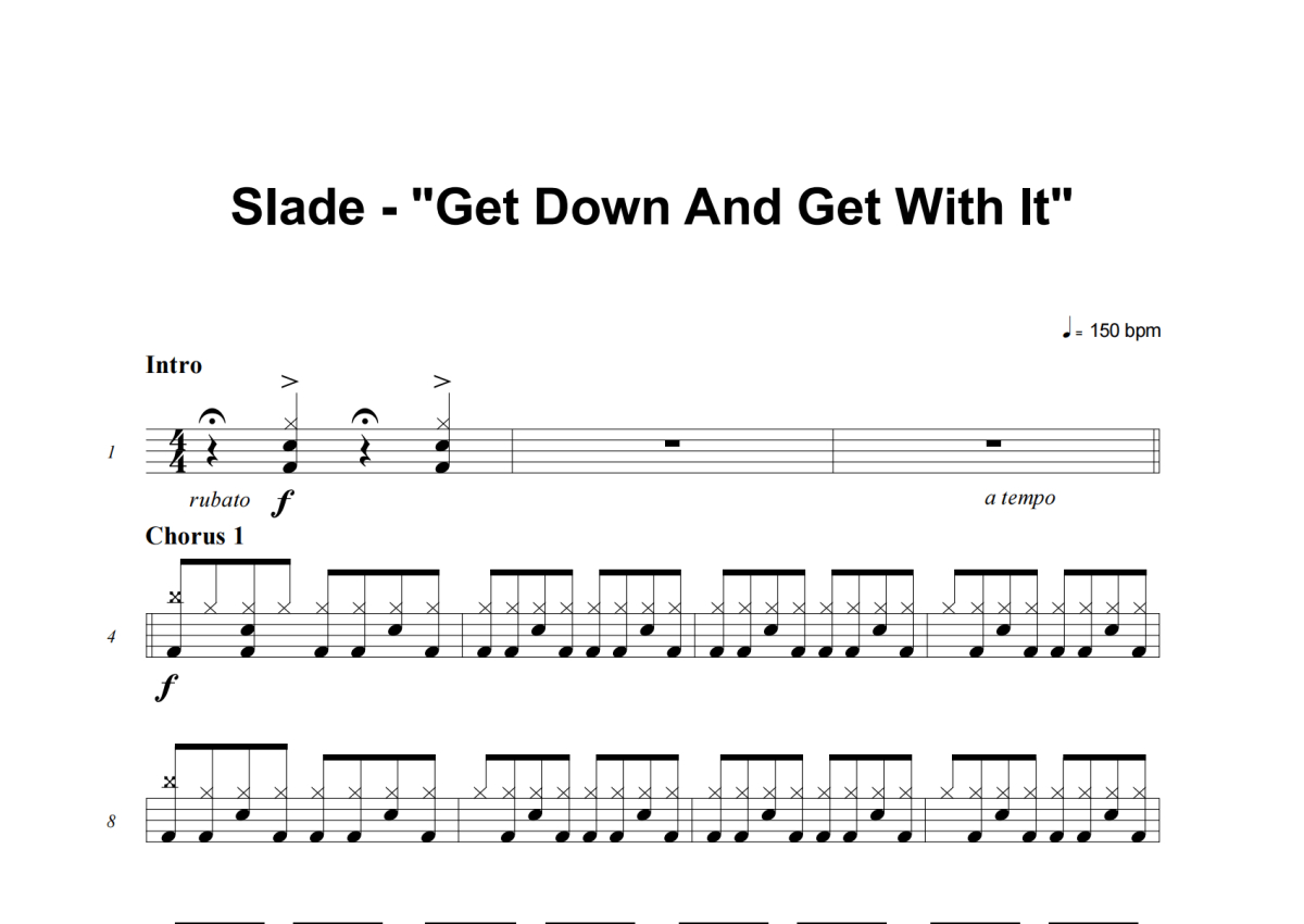 《Get Down With It》是Slade演唱的一首歌曲,这份架子鼓谱共有四张高清图谱,图谱由 @积极处世 编配上传,图谱使用五线谱编配,使用这份Get Down With It架子鼓谱,你将能够轻松地敲打出这首Slade的Get Down With It,快来尝试吧。