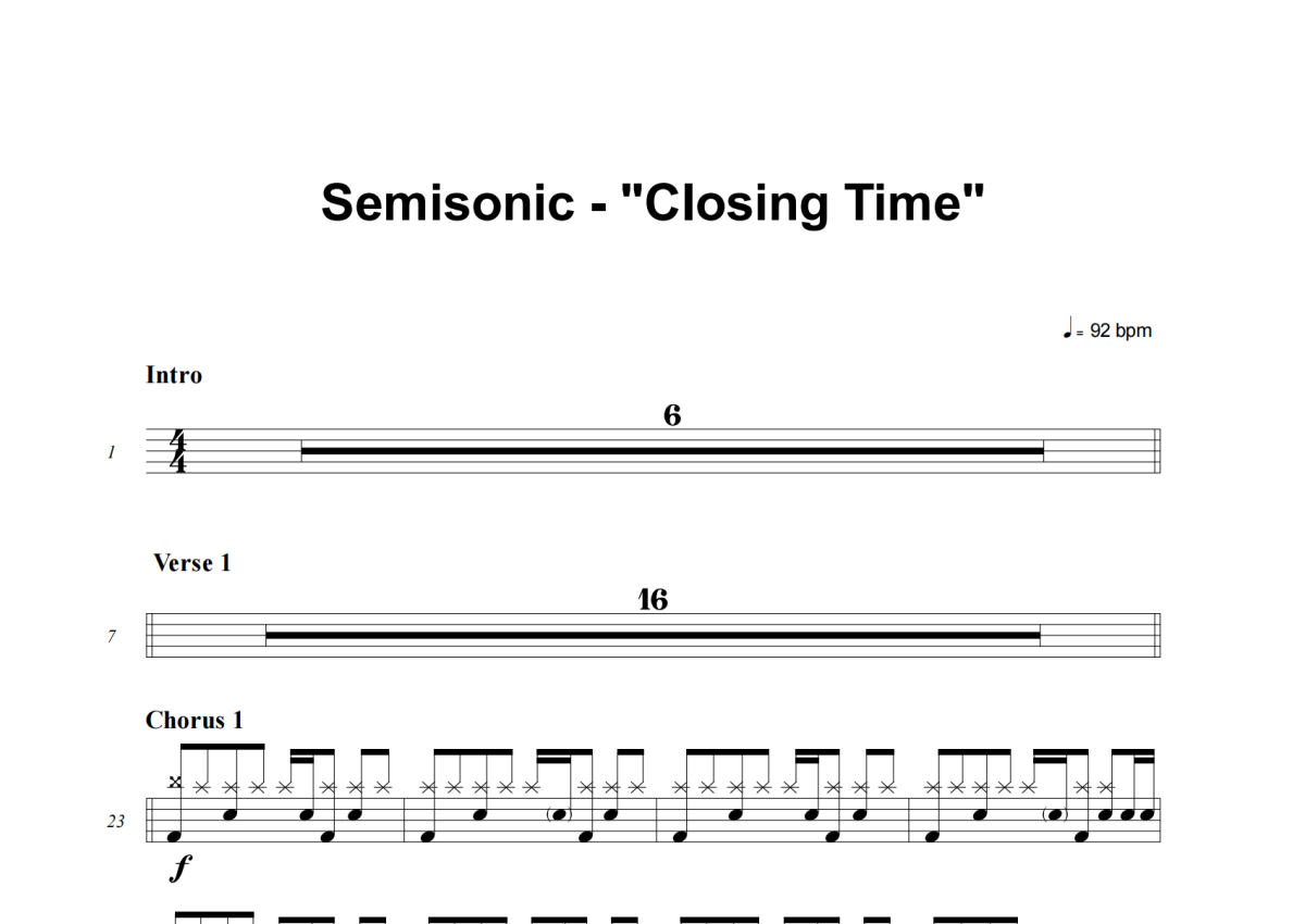 Semisonic《Closing Time》架子鼓谱