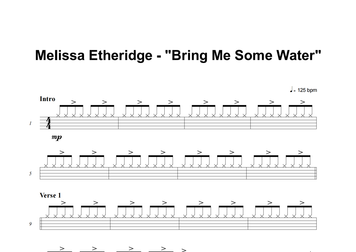 Melissa Etheridge《Bring Me Some Water》架子鼓谱