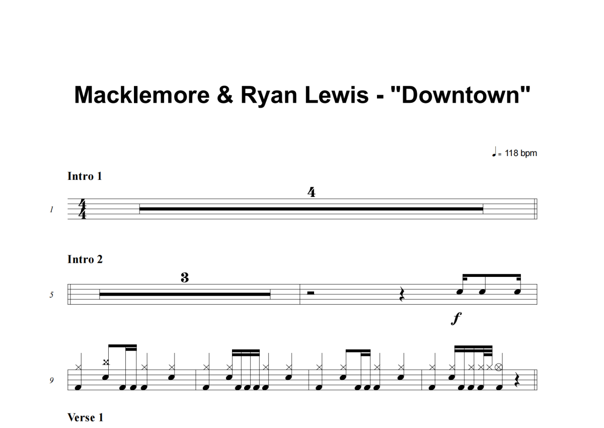 Macklemore & Ryan Lewis《Downtown》架子鼓谱