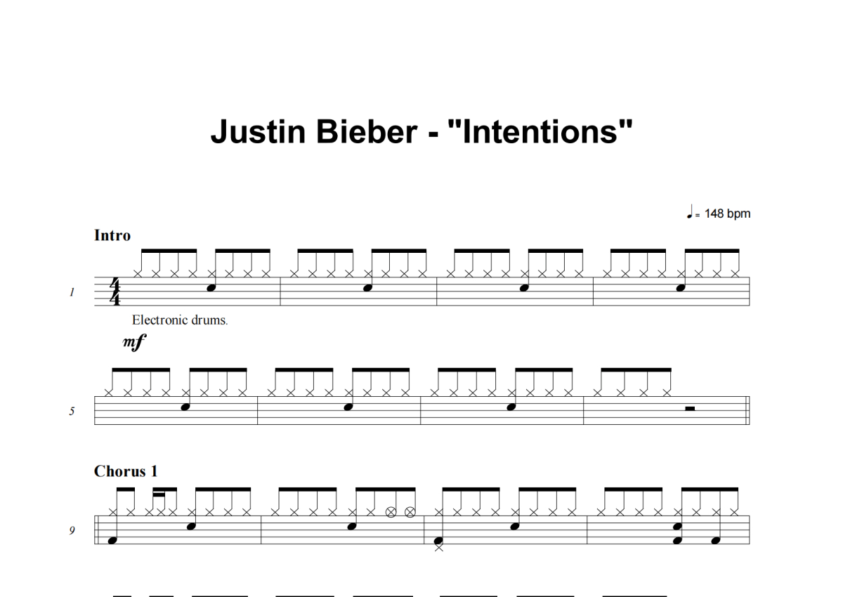 《Intentions》是Justin Bieber演唱的一首歌曲,这份架子鼓谱共有四张高清图谱,图谱由 @积极处世 编配上传,图谱使用五线谱编配,使用这份Intentions架子鼓谱,你将能够轻松地敲打出这首Justin Bieber的Intentions,快来尝试吧。