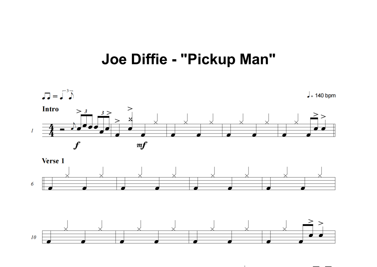 Joe Diffie《Pickup Man》架子鼓谱