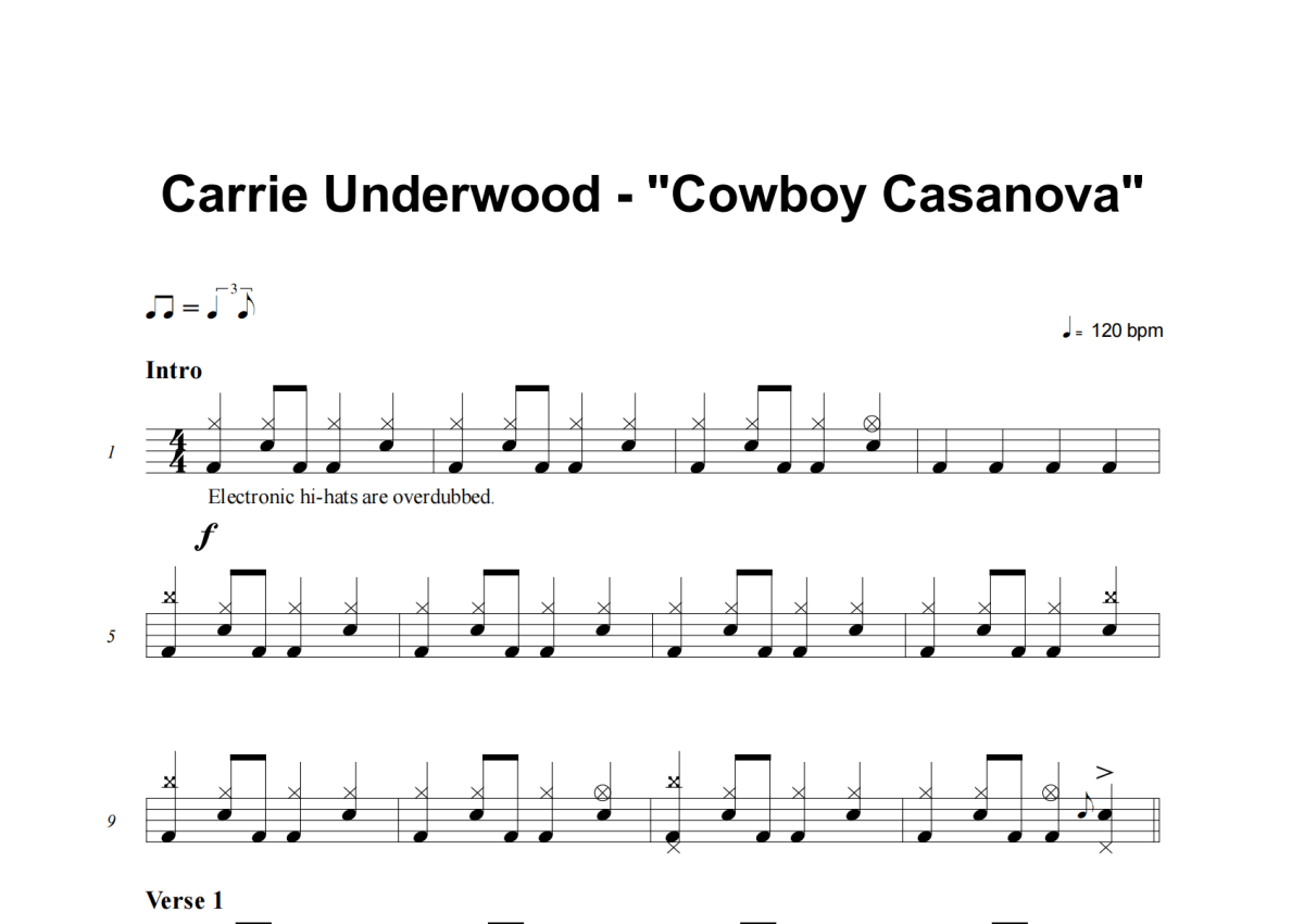 Carrie Underwood《Cowboy Casanova》架子鼓谱