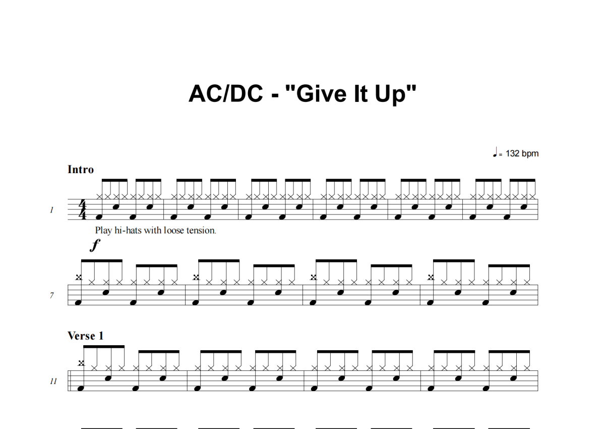 AC_DC《Give It Up》架子鼓谱