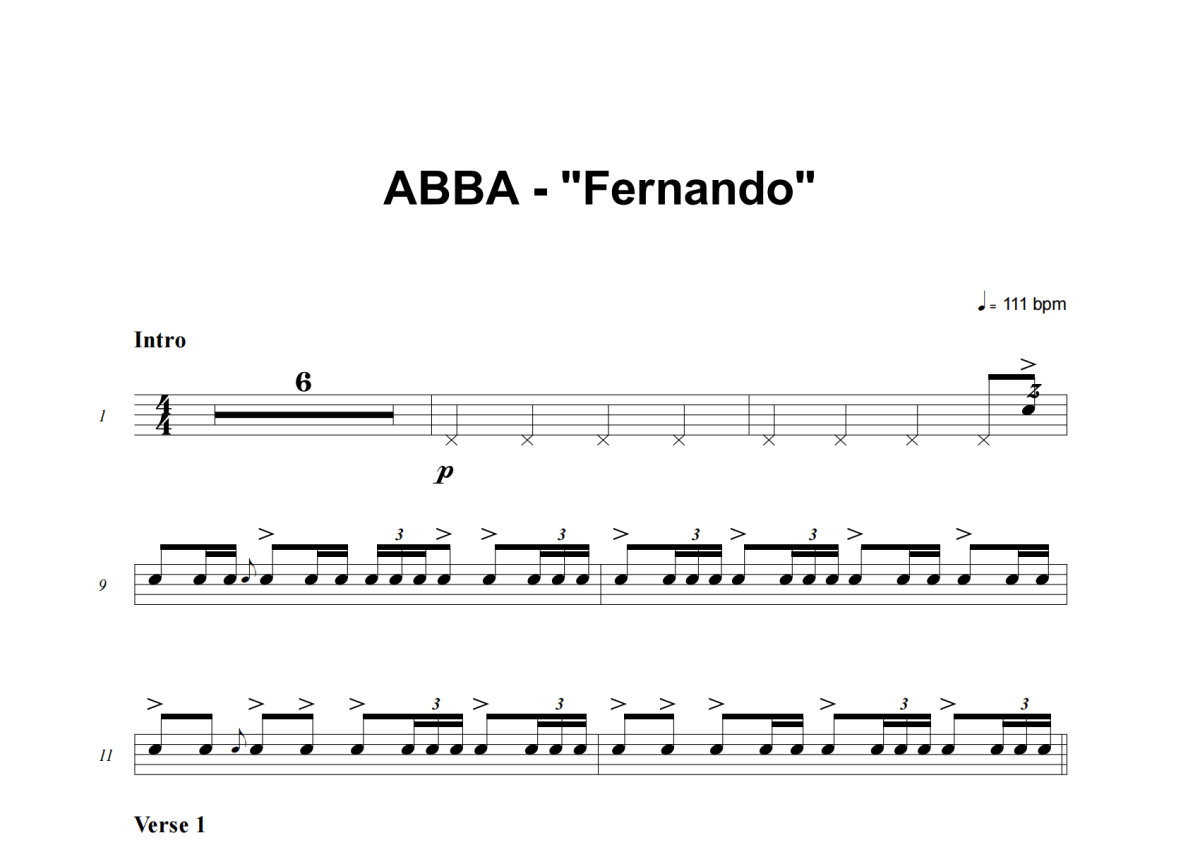 ABBA《Fernando》架子鼓谱